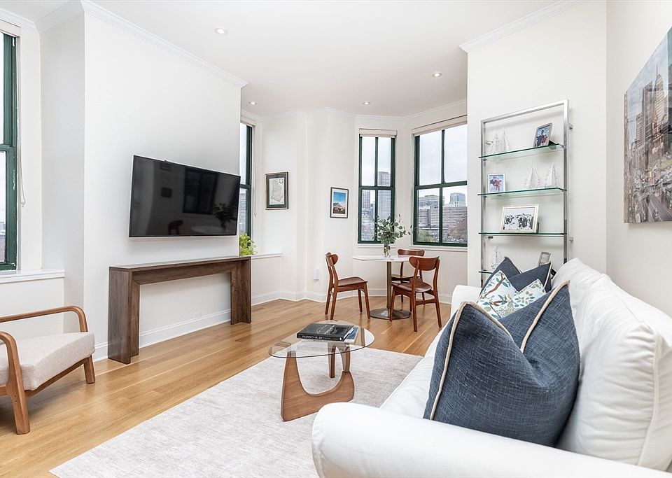 Experience this newly updated corner unit that includes 2 bedrooms and 1 bathroom, situated on the 5th floor of an elevator-equipped building in the heart of South End. This condominium features a new HVAC system (Central Air), a new hot water tank, brand new authentic hardwood flooring, contemporary lighting throughout, a new in-unit washer and dryer, microwave, oven/stove, custom shades, a fully renovated bathroom, new countertops, and various other improvements. The unit is characterized by high ceilings and expansive windows, which provide an abundance of natural light. Stunning Back Bay views complete this residence. Additionally, this condo comes with extra storage space. The building also has a common roof deck with stunning views. Renovated units rarely if ever comee available in this building, and this one is move-in ready.