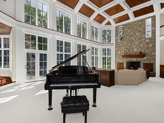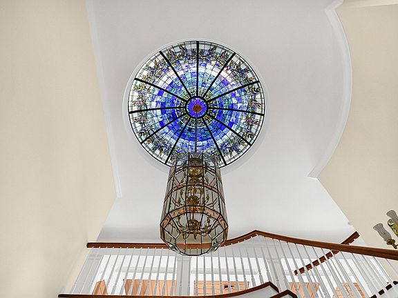 SEE THE 3D, DRONE AND WALK-THUR TOURS JUST CLICK THE VIRTUAL TOUR ICON!! Magnificent riverside estate by custom homebuilder Steve Heinlen, offering an unrivalled living experience. The home's stunning entrance features a domed stained glass ceiling, beautiful cherry floors and breathtaking river views. The seamless blend of indoor-outdoor living with an open-concept floorplan featuring a elegant Great Room, highlighted by a coffered ceiling. The first-floor owner's suite, complete with an attached library, luxurious bath, fireplace, and deck access, provides a private retreat. The walk-out lower level boasts a generous family room, bar, game room, and a flex room. Enjoy riverside relaxation from the expansive paver patio, screened porch or the crow's nest viewing room.