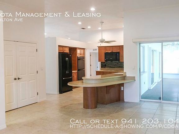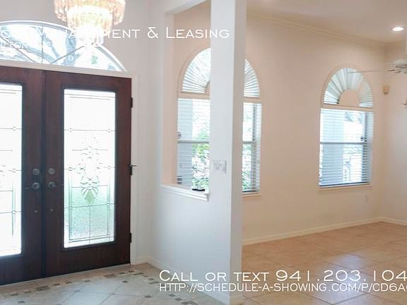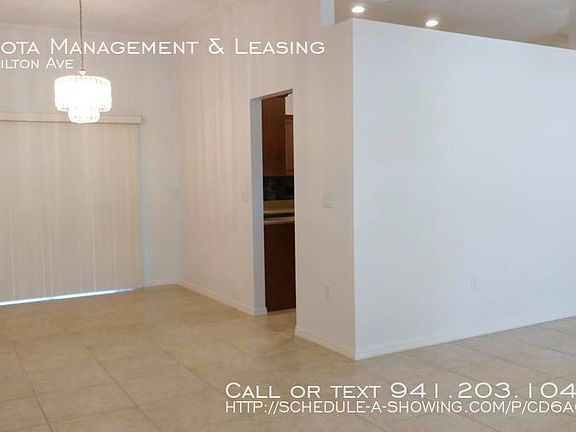 This is a beautifully updated 3 Bedroom 2 bath corner home on a cul-de-sac in Cedar Creek. The front yard is shaded by large oak trees and the backyard is nicely landscaped. The home features tile throughout and vaulted ceilings. The kitchen has beautiful wood cabinets, silestone countertop and black appliances. There is a double oven, a built-in cooktop stove and a pas-through window to the patio. The master bedroom, dining room and family room have access to the patio. The master bathroom features his and hers sinks, a garden tub and walk-in shower. The bedrooms all feature walk-in closets and the spare bathroom has a tub/ shower combination and linen closet. There is a two car garage with shelving storage. This home includes lawn care and is located near the UTC Mall, the airport, lots of restaurants and shopping. HOA rules include: No commercial vehicles, trailers, rv's boats are not allowed. Trash can must be kept out of view (garaged or behind an approved fence). Dogs must not be left out to bark and waste must always be picked up. Please allow 2 weeks before move-in date for processing of an application with the HOA. From University, head South on Conservatory Road, then turn left onto Milton Ave. The property is located in the cul-de-sac on the right. 20 lb max. 2 pet max. Dogs with Breed Restrictions. UTC Mall, Shopping, Restaurants, SRQ Airport. Sarasota. 2 Car Garage. Wood Cabinets, Silestone Countertops, Double Oven, Pass-Through to Patio. Split Plan, Tile Floors. Yard. Lawn Service Included. Screened Porch. Two Car Garage