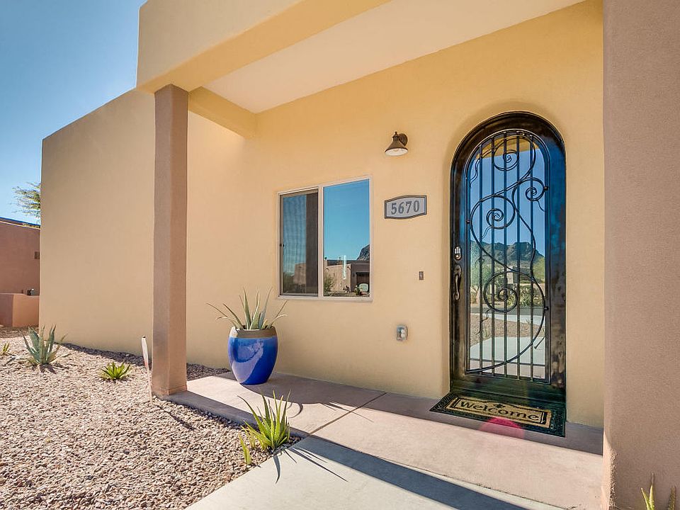 This gorgeous newer home is located in the desired Tucson Estates. Your views are amazing in this pristine area of Tucson. You have a quiet neighborhood with access to a clubhouse, golf course, swimming pool and hiking trails galore. This one owner, three bedroom/two bath house is immaculate and very current with all the bells and whistles. It is HGTV move-in ready!