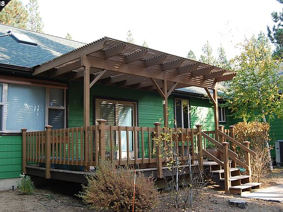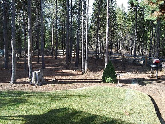 One-level on 1.02 Ponderosa Pine-shaded acres bordering National Forest 5 minutes west of Sunriver. Maple hardwood floors, hickory cabinets, and a Pella French door leading to a forest-facing deck covered with a pergola. Master bedroom suite with spa tub and a 16 x 16 studio. Den by front door can be a 4th BR. In back of the oversized 2-car garage is a 26 x 26 heated and finished shop. 26 x 26 wood shop with own overhead door too.