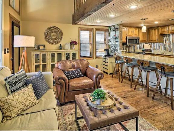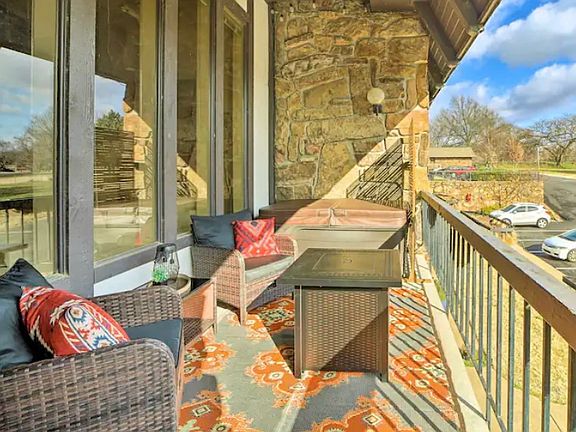 Enjoy this recently remodeled and fully furnished condo in the heart of Shangri La Resort on Grand Lake. Rent includes ALL utilities including Hi-Speed Internet and electricity!! You will enjoy seasonal access to the private on-site pool. This unit features a lofted 1-bedroom, 2-bathrooms, work desk, 2 Smart TVs, and a balcony with a private hot tub. Explore the community's 7-mile golf cart trail, hit the links at the Shangri-La Golf Course, or take a boat out on Grand Lake! Later, you can unwind on your private patio and enjoy a cozy evening by the gas fire pit. Super quiet gated community.