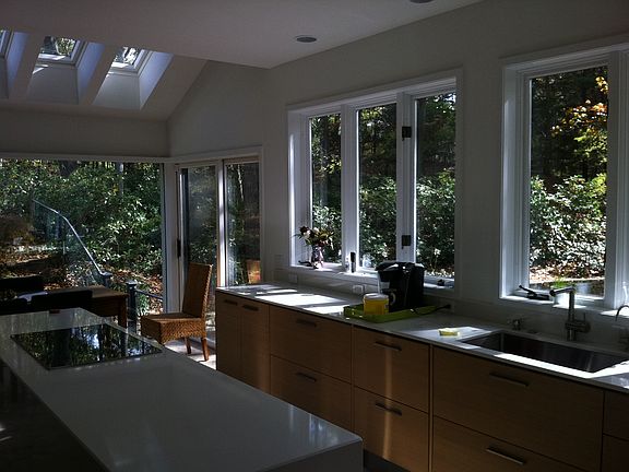 NATURE & ART Blend well in this stunning contemporary on 2 private acres . Elevator takes you to each level of this 4 bedroom, 3 1/2 bath home. 3 Car garage with circle drive, 1st floor master with luxurious bath. Full kitchen, Living, Dining and Family Room remodel in 2011/12