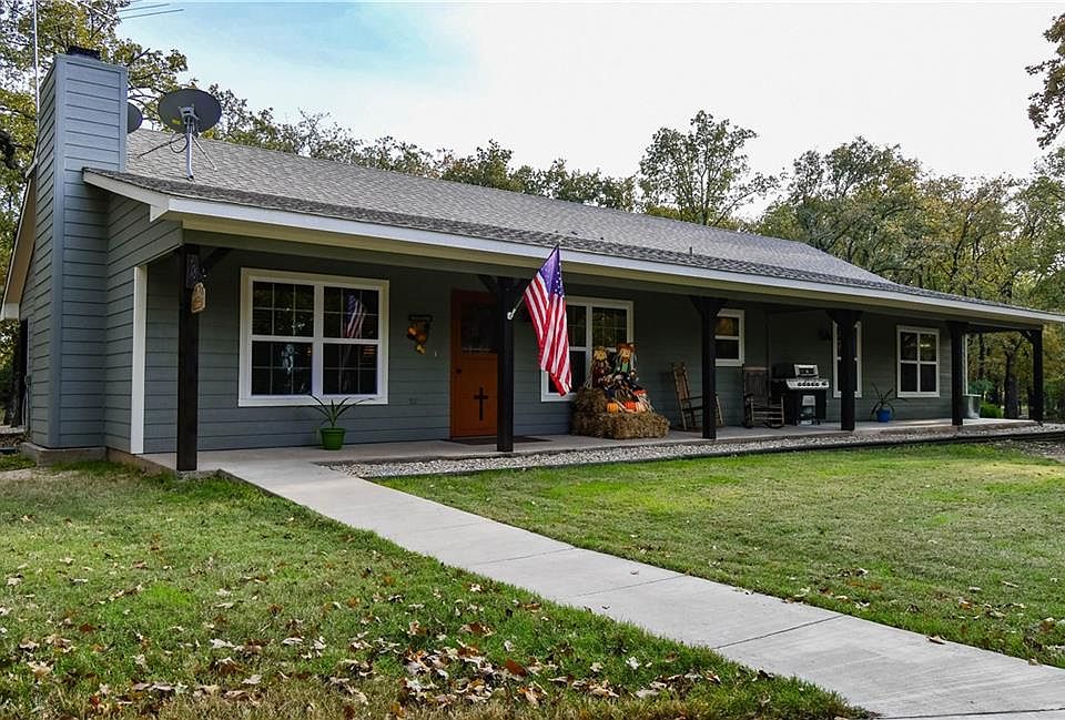 Every day is a peaceful getaway in this gorgeous 3 bedroom, 2 bath home on just over 9 acres in West! Features include a gated entry, open living and kitchen area with wood burning fireplace and custom countertops, acres of beautiful mature oak trees, above ground pool with waterslide and zipline, workshop with electricity, generous pond area, and so much more! This home has been loved and it shows!
