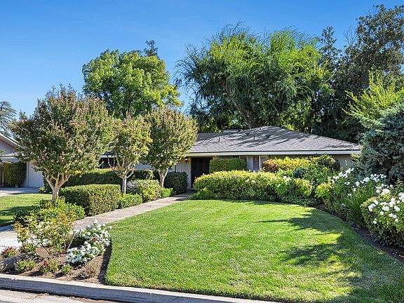 WOW check out this beautiful yard on a .31 acre lot which is hard to find. Fantastic Bullard High neighborhood and location. Great floorplan with separate Living and Family Room. Inviting double door entry. Spacious Family Room with built-in bookcase flanking brick Fireplace. Recessed lighting in Family Room and Kitchen. Dining Area off Kitchen and Family Room with Plantation Shutters. Sliding Glass Door in Family Room opening onto cover patio and stunning backyard. Very private with lush Foliage , producing orange tree and vegetation with several Garden seating areas. Charming Rose covered wood Pagoda. Extending Adobe Patio Pavers for additional patio area. Wonderful backyard for entertaining. Lots of roll out drawers with Kitchen cabinets. Large Guest Bathroom with Tub/Shower and make-up vanity counter area. Large Master Bedroom with walk-in closet. Nice size Guest rooms with ceiling fan lights. Living Room off Entry and Family Room. Large 2 car garage with separate walk-in storage closet. Wide side yards with built-in exterior shed/closets for garden tools and supplies. Long front driveway that can easily park 4 cars. Newer Composition Roof and HVAC unit approx. 5-6 years old. Great Property and Neighborhood. You will not be disappointed.