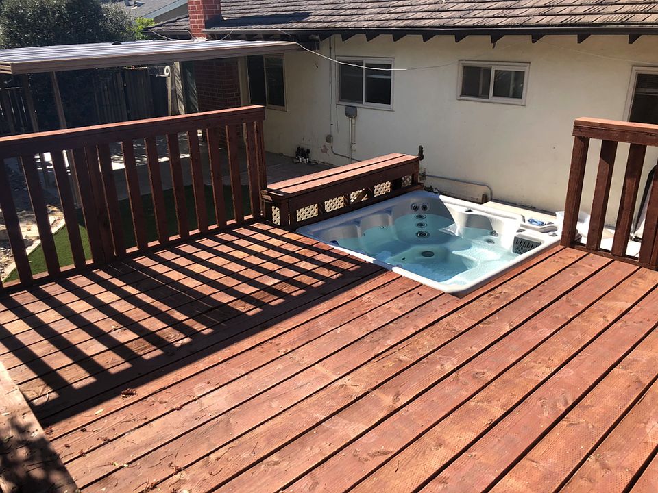 - Spacious private backyard with turf, hot tub, and deck with plenty of built-in seating!