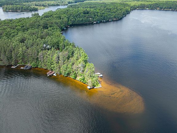 Fabulous once in a lifetime opportunity to own this MW Chain property! The Point has 593’ of perfect sand ftg all the way around and is the setting for this 6,400+ sf home & wet boathouse w/832 sf living quarters! Only the finest craftsmanship was used to build this cedar shake and stone accent home! A thoughtful floor plan design has a stunning combination of ship lap & bead board interior. Main level includes GR w/double sided wood burning fireplace and has the hearth room on the other side, built in TV lift cabinet, wet bar, Chef’s kitchen w/center island, high-end appliances & custom cabinetry, screened porch, half BA, primary suite w/private BA & sleeping porch. Upper level has loft sitting room, 2BR’s & full BA. LL has FR w/gas FP, 2BR’s, full BA, utility & storage. Wet boat house has 3 slips & adorable living qtrs above complete w/LR, K, full BA, BR & bunkroom. Extensive landscaping covers the grounds w/patios and a lighted grilling station. within 5 miles to local airport!