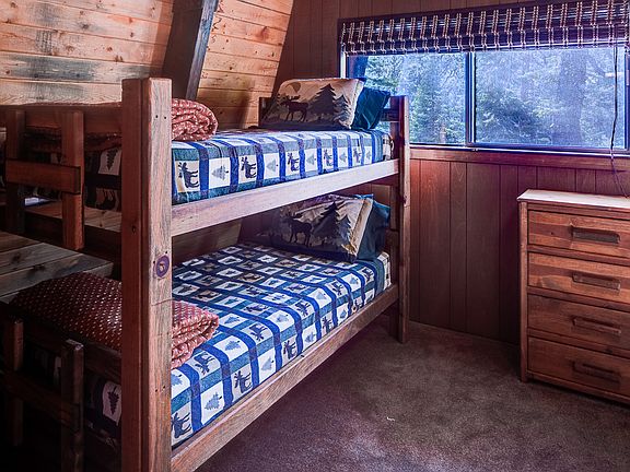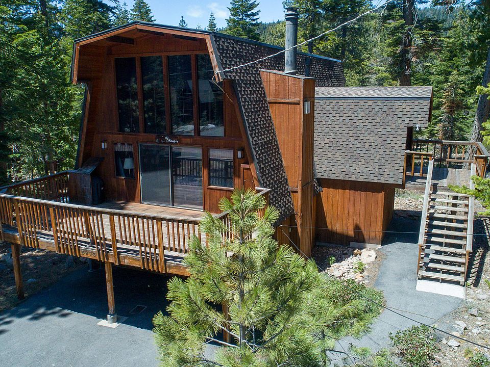 Very special & private Agate Bay home with CA state land on north & west sides. Main level features large great room, vaulted ceilings, stone fireplace, large front deck, newer kitchen plus 2 bedrooms and 1 bath. Upstairs there's a bonus open loft with 2nd fireplace, an enormous bedroom/bunk room and a 2nd bath. This is the ideal Tahoe home with room for entertaining and an easy ½ mile walk to the Lake. Large storage closet under front stairs plus crawl space give ample room for all those Tahoe toys.
