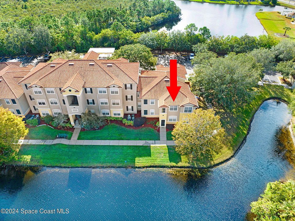 Corner unit lakefront condo in the highly sought-after Viera community offers updated features and stunning panoramic lake views. The condo includes stainless Whirlpool appliances, including a washer and dryer, and neutral vinyl plank flooring throughout. With a private first-floor entry leading to the second-story loft unit, you'll enjoy vaulted ceilings and spacious living. The condo features three generously sized bedrooms with walk-in closets. Pets are welcome (up to 35 lbs. and a limit of two). Dues include: internet, cable TV, weight room, clubhouse, pool, mowing, landscaping and insurance.