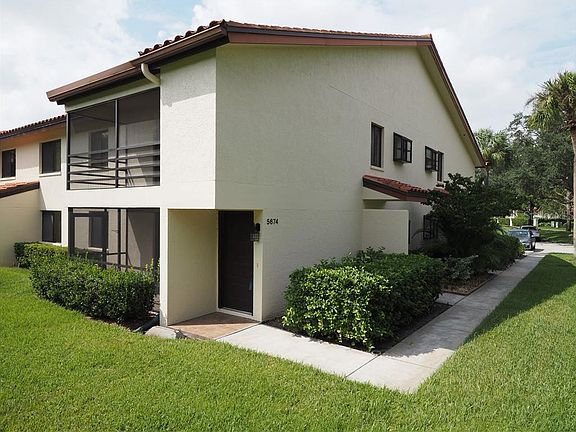Priced to sell! This 2 bedroom 2 bath second floor condo is an end unit with a private side entrance located Gardens at Palm Aire and boasting lake views and a southern exposure from its living room and screened and covered balcony. Perfect as a year round residence or a vacation/second home this maintenance free condo is offered with furniture optional. This home is located only steps away from the community club house with fitness center, Olympic size heated pool and tennis/pickle ball courts. One of the best of Sarasota locations it is close to University Town Center Mall and all of the University Parkway shopping and dining. Minutes away from both the Sarasota and Lakewood Ranch downtown, as well as the airport and all of the area beaches.