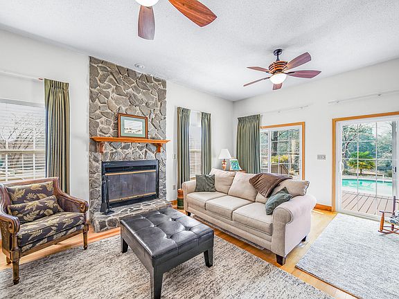 Stunning pool home on a lake in Crestview! This gorgeous property is over 2 acres and includes an open two bedroom house, an inground pool, and an expansive yard with wonderful lake views. Walking inside the home, you'll be surprised by how bright and airy it is. The main level is an open living room, dining area, and kitchen, all accentuated with natural wood tones and multiple windows with beautiful views. In the sunken living room, natural light floods through the foyer skylight and the sliding doors to the back deck, while the stone fireplace and wood floors add warmth and character. The large kitchen provides ample storage and is a blank slate ready for you to add your personal touches. With some simple cosmetic updates, it could become anyone's dream kitchen!