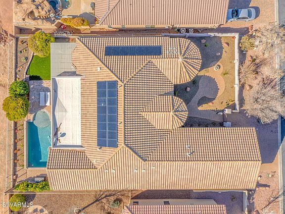 Extraordinary & Stunning! One of the most Upgraded Homes in La Privada at Verde Santa Fe. Positioned on a superb site with outstanding Mingus Mountain & Golf Course Views. Gated Courtyard Entry with Fire Pit sitting area leads you into this Magnificent Home enhanced with Custom Barrel Ceiling Foyer, Lighted Coffered Ceilings & Gorgeous Tile Flooring. Dream Kitchen featuring Granite Counter tops, Custom Backsplash, Breakfast Bar & Nook, Large Island & separate Formal Dining Room. Opulent Master Suite consists of two walk-in closets, separate vanities, soaking tub & walk-in shower. 2 additional Guest Rooms with private baths & a fantastic media/workout room plus den/office! Enjoy your Resort Style backyard with Covered Patio, 2 year old pool, Beautiful Pavers & Turf. Owned Solar, no lease!