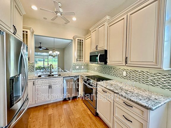 Experience the charm of this beautiful 2-bedroom, 2-bath attached villa, available immediately for an **ANNUAL LEASE** and is offered **UNFURNISHED**. Step inside to discover neutral tones, abundant natural light, and a completely updated interior. The spacious kitchen, located at the front of the home, flows seamlessly into the main living space with an open concept design, connecting the dining, living, and Florida room. Enjoy breathtaking views of the pond and golf course from the beautiful Florida room. The kitchen is a chef's dream, featuring granite counters, stainless steel appliances, and exquisite wood cabinetry. The spacious master bedroom is situated towards the back left of the property, offering large windows with picturesque views of the pond and golf course. It includes a fully updated ensuite bathroom with a large walk-in closet. The second bedroom, located towards the front left of the property, is also generously sized and conveniently paired with the second full bathroom. Additional features of this property include an in-unit washer/dryer with a spacious laundry room, hardwood floors throughout, pond views, a stunning oversized 2-car epoxied garage, and much more.