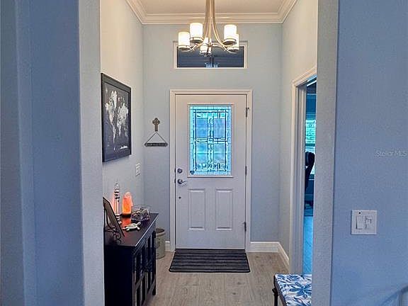 Welcome to this absolutely stunning CUSTOM DESIGNER home where modern elegance meets relaxed Florida living. Perfectly situated on a serene water view lot, with a preserve view, this nearly new residence offers both beauty and functionality at every turn. From the moment you arrive, the curb appeal captures your attention. From the decorative driveway with a custom turtle design to the rich navy-and-white exterior accented by crisp trim, lush landscaping, and stylish lighting.Step inside and prepare to be wowed. The open-concept layout is bright, airy, and finished with upscale touches throughout. The gourmet kitchen is the true heart of the home, featuring dramatic Navy cabinetry, striking GRANITE countertops, an oversized island with pendant lighting, and a designer tile backsplash that extends all the way to the ceiling. Stainless steel GE Profile appliances — including a gas cooktop, wall oven, and built-in microwave, combine performance with style. A walk-in custom pantry offers exceptional storage and organization for the home chef.The spacious living and dining areas flow effortlessly, enhanced by waterproof Laminate flooring, crown molding, and abundant natural light. The primary suite is a luxurious retreat, complete with a tray ceiling, large closet, and a spa-inspired en-suite bath. Here you’ll find double vanities, granite countertops, and a large, walk-in Roman-style shower with decorative tile. Guests will feel right at home, too, with a beautifully appointed guest bath and an additional bedroom with a pocket door offering comfort and privacy.Outdoor living is where this home truly shines. Step through the sliding doors to the expansive 29x20 screened lanai that’s all under cover. It’s an entertainer’s dream with a beautiful water and preserve view Whether it’s your morning coffee or an evening glass of wine, this space invites you to unwind and enjoy the view. Down a separate hallway, you will find a large laundry with built-ins, a linen closet ,and bedroom #3 which has a built-in Murphy Bed and walk-in closet.The oversized three-car garage (including golf cart space) features epoxy flooring, built-in organization, and room for all your Florida toys. Additional upgrades include a tankless water heater, upgraded lighting throughout, and meticulous attention to detail in every corner.Located close to recreation centers, golf, shopping, and dining, this home combines luxury, convenience, and a peaceful setting — offering the best of The Villages lifestyle. 5675 Melvin Drive is more than a home — it’s your next beautiful chapter in Florida living. Call me today!!!