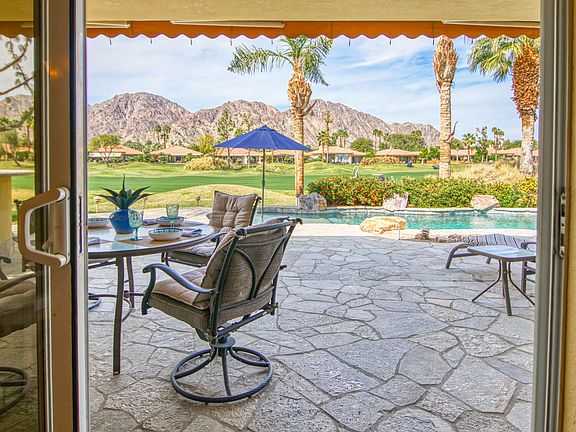 We're giving it a PERFECT 10! Mountain + Fairway views are hard to beat. Welcome to the celebrated Nicklaus Private Course and a fantastic opportunity on the 10th fairway. PGA West means you're in very good company. 3BD, 3BA open floor plan featuring high ceilings + natural light throughout. Living room, dining, and kitchen take in some AMAZING views. Built-in cabinetry, surround sound system and wet bar work their MAGIC. This island-style chef's kitchen is a delight. Roomy enough for a sous-chef or two! En suite master bedroom feels like a perfect fit in terms of size and just how beautifully it opens to the pool + spa. Walk-in closet, dual vanities, and a nice touch of glass block. Bedrooms enjoy a nice separation. Built-in BBQ + covered patio makes for great entertaining. Yet another plus, the backyard is a ''fence free'' zone offering unobstructed views to the course and Santa Rosa Mountains. This home's layout achieves a solid sense of privacy from neighbors on both sides. Garage features a golf cart space. The ''Western home of Golf in America'' - PGA West includes 9 championship courses, 5 clubhouses + 2 private clubs. Enjoy it all! **Property is available to VIEW STARTING on April 2nd.**