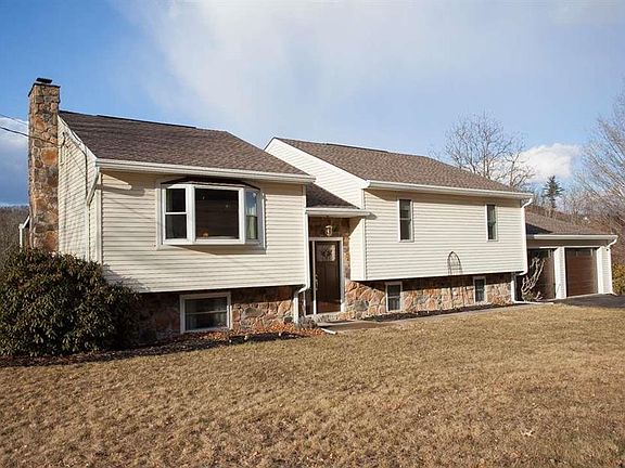 Beautiful home in a picturesque country setting. Home features updated, custom kitchen and main bath. Wood floors in dining room and kitchen. 3 bedrooms and 2 full baths situated on a 1 acre lot. Fireplace insert with pellet stove in lower level family room heats most of the house. Large covered deck and patio below with hot tub. Large storage area between walk-out lower level and 2 car garage has laundry area with ample storage space. Home has been meticulously kept. Roof was replaced 8 years ago.