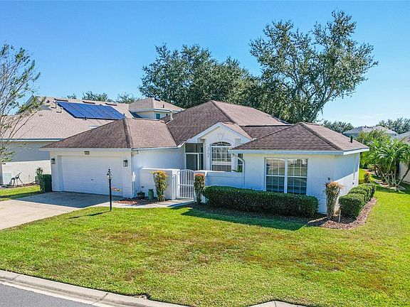 One or more photo(s) has been virtually staged. Welcome Home to Royal Harbor — a highly sought-after 55+ community along the peaceful shores of Little Lake Harris! This beautifully designed 4 bedroom, 3 bathroom home offers something truly special: a detached guest suite/mother-in-law retreat with its own private entrance and ensuite bath, all centered around a tranquil private courtyard. It’s the perfect setup for hosting family, long-term guests, or creating a quiet getaway space all your own. Step inside and you’ll find a move-in-ready layout that just feels good — warm wood laminate flooring runs throughout the living areas and bedrooms, the split floor plan adds privacy, and the zoned A/C keeps everyone comfortable. The eat-in kitchen features generous counter space, brand new appliances and cabinet handles, and pull-out cabinet drawers — once you’ve had those, you’ll wonder how you ever lived without them! Outdoor living truly shines here. Enjoy your morning coffee on the cozy front patio tucked inside the entry gate. Fire up the grill in the spacious screened courtyard with its built-in gas hookup. Or relax in the screened rear lanai, accessible from both the great room and the primary suite — the perfect spot to unwind at day’s end. Major updates provide peace of mind: Roof (2018), HVAC (2018) + Compressor (2021), Gas Water Heater (2022). And talk about convenience — the community’s incredible amenities are just a short stroll away. You’ll be close to shopping, dining, medical facilities, and entertainment, yet tucked into a neighborhood that feels friendly, active, and inviting. This is more than a home — it’s a lifestyle, a place to relax, to gather, and to enjoy the good things in life.