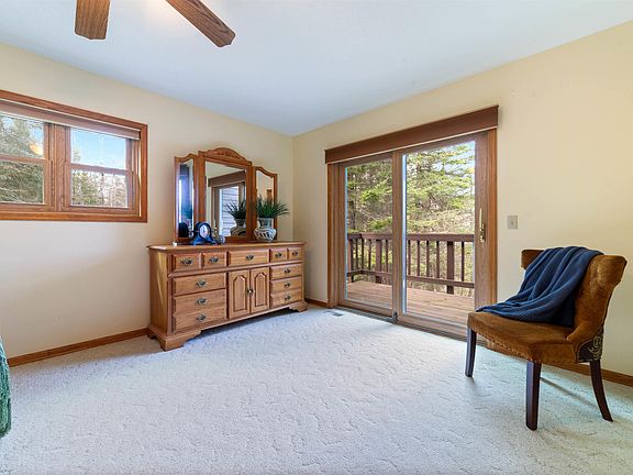 Welcome to country living on 8+ acres on McQuade Road! This thoughtfully designed home combines space, comfort, and natural beauty with 3+ bedrooms and 1.75 baths. The main level showcases an open-concept layout with a bright, spacious kitchen featuring a convenient pantry that flows seamlessly into the dining area and then to the living room. Patio doors in the dining room lead to an impressive wrap-around, multi-level deck – perfect for outdoor entertaining or peaceful morning coffee moments while enjoying your private acreage and over looking your apple & pear trees. Main floor conveniences include a private bedroom, full bath and laundry room. The lower level is a cozy retreat, featuring a welcoming family room anchored by an impressive gas fireplace with stunning stonework. 2+ additional bedrooms on this level provide comfortable spaces for family or guests along with storage and a 3/4 bath. This property stands out with its two-garage setup. Both are heated and insulated, including one with a ready-to-finish loft space – ideal for creating your dream recreational area, home office, or studio. It also has a lean to for RV storage! Modern amenities include a compliant septic system and fiber at the road. Don't miss this rare opportunity to own a spacious home with many possibilities on over 8 acres of land with 7 additional acres being listed separately. Schedule your private showing today!