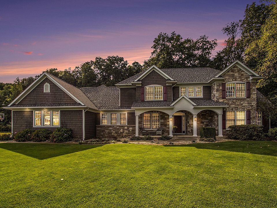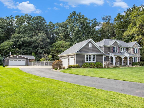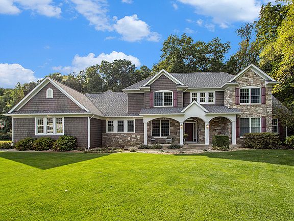Welcome to this stunning, never before listed, six-bedroom, 4.5 bathroom executive home, perfectly situated on 1.85 acres of partially wooded land. The expansive grounds are complemented by a professionally landscaped backyard, complete with a serene spa, inground pool, and inviting fire pit area - the perfect setup for alfresco dining and warm summer evenings. A detached 24x24 garage provides ample storage for cars, toy, or lawn equipment, offering flexibility and convenience. As you step inside, you'll be greeted by the main floor's impressive layout, featuring a spacious master suite, formal dining room, and open concept kitchen. The kitchen boast high-end finishes and seamlessly flows into the large, vaulted-ceiling family room, where a gorgeous wood-burning fireplace creates a cozy atmosphere. Additional highlights on the main floor include a functional office, practical mudroom, and convenient main floor laundry. The upper level offers ample space for family and friends, with three bedrooms, one featuring an en-suite, and an oversized bonus room that could easily function as a fourth bedroom. Meanwhile, the lower level is an entertainer's paradise, complete with a family room, wet bar, workout room, full bath, and guest bedroom. This incredible property boasts a three-car attached garage with easy access from the main floor or a secondary staircase from the garage, providing effortless entry. With no HOA fees and an abundance of updates, this home offers the perfect blend of luxury, functionality, and freedom. Schedule your private showing today to make this exceptional property yours.