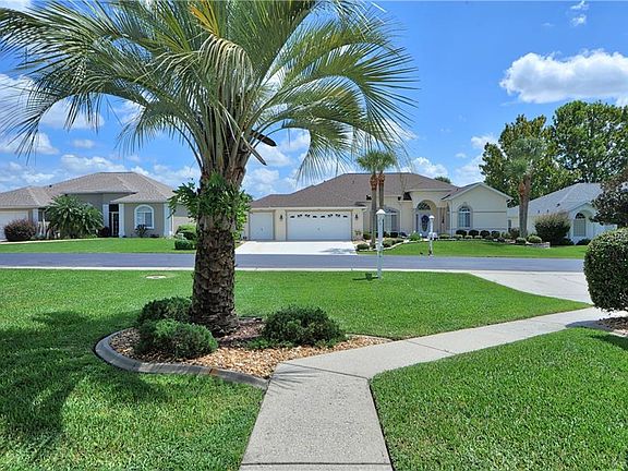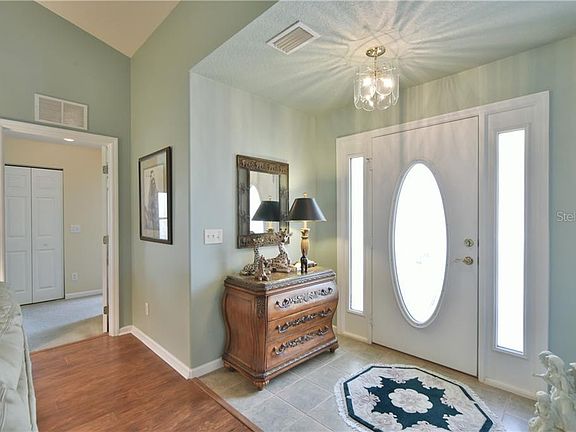 SPECTACULAR GOLF COURSE VIEW +GOLF CART GARAGE! Lush landscaping leads to this lovely 3 Bd/2Ba House with single door with glass entry, high ceilings, desirable floor plan, split bedrooms and breathtaking view of the unobstructed golf course. Large living room high ceiling fan and room for a large screen television. Separate dining room has new fixture and a view of the front yard. Inviting Eat-In Kitchen has Center Island with plenty of storage, built-in dishwasher, time-saving microwave, upgraded cabinets, refrigerator, clear top range, beautiful back splash, upgraded counter tops and a large pantry. Inside utility room has extra cabinets for storage is right off the kitchen area. Master bedroom has tray ceiling with fan, walk-in closet and plenty of room for a king size bed. Master bathroom has large walk-in shower, separate vanities with extra storage and a walk-in closet. Second bedroom has great golf course view, ceiling fan and a large closet. Guest bathroom has linen closet, shower and plenty of storage underneath the vanity. Florida Room has A/C and heat for year around comfort, acrylic window, ceiling fans and an outstanding view of the golf fairway for constant entertainment. Garage has pull down ladder upgraded racing flooring, work bench and extra storage. Golf cart garage has room for your golf cart and for additional storage. This house is neat and ready for you to move in. House is close to I-75, shopping across the street and 1.5 miles East of World Equestrian Center. Sellers would entertain selling it furnished for an additional price. All measurements are approximate. Buyer(s) to re-measure.