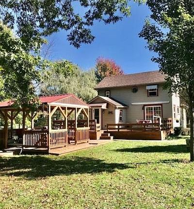 7.47 Acres of Eden. Cozy and fresh 3BR Home with mud room, upgraded electrical service (200 amp) 1st floor master, deck and gazebo, Walking trails, Pond, Cabin in the woods, Garages, workshop, heated Pavilion, Multiple outbuildings with more storage then you can imagine. Kids playhouse, zip lines fishing pond and room to roam. New; house roof (21), furnace (20), septic serviced (10/21), carpet in up bedroom, flooring on 1st floor with trim. Exterior Buildings: Pavilion,- 24x48 with 100 amp service, Furnace and fireplace. Garage,- 24x32 with loft Barn,- 24x30 (was original house). Workshop,- 30x48 with fireplace. Cabin,- 12x24 recently built. Barn,- 24x30. Pump house/well house, Kids clubhouse, Bus stop, Garden shed, Hunting blind. Southeast Schools. Home was torn to studs in 1995 with new electric service, plumbing, well and septic installed at that time. Property backs up to the State park game reserve.