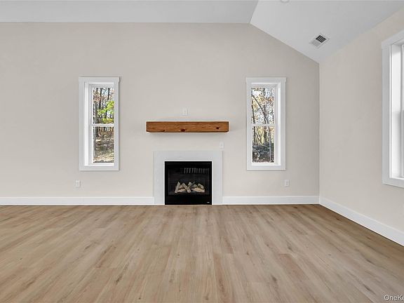 Be the first to live in this stunning NEW construction home situated on over 4 acres of land in the Carmel School District. You will enter in to your open concept living room w/ gas fireplace, dining room w/ slider to rear deck, generous sized custom kitchen with oversized island and hardwood wide plank flooring throughout. The open concept will create a spacious, welcoming atmosphere, perfect for entertaining guests or relaxing with family. The kitchen includes quartz countertops, stainless steel appliances and plenty of cabinet space. Light and bright! Three bedrooms 2 full baths complete the upper level. The primary suite includes a luxurious full bath with double vanity and a generous walk-in closet. Head downstairs to a full finished walkout basement, 9ft ceilings, 1 additional bedroom, laundry room, full bath and alcove for entry off spacious 2 car garage. You don't want to miss your chance to make this dream home yours!