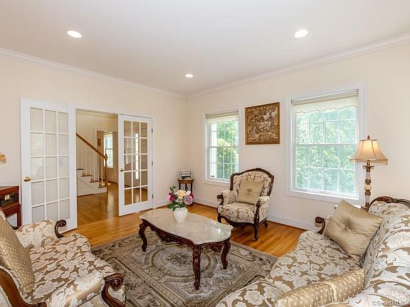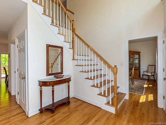 Not to be missed This 4 bed, 3.5 bath colonial is set back on almost an acre of land for ultimate privacy, with quick access to three top rated schools, library, shopping, and recreation. The interior boasts a two-story foyer that is bright and sunny. The formal living room with french doors and hardwood floors is suitable as a home office. The dining room with hardwood floors and butler's pantry is the perfect space for entertaining. The large eat in kitchen with plenty of cabinets has hardwood floors, granite countertops, recessed lights and opens to an eat in area with sliders to the deck. The bright family room is off of the kitchen with a wood burning fireplace. A half bath completes the main level. The primary bedroom has a tray ceiling, recessed lights, walk in closet and full bath with a jetted tub. An additional en suite bedroom at the end of the hall is perfect for welcoming guests. There are two additional bedrooms, full bath and laundry room on the upper level. The partially finished walkout basement has plenty of space. There is a work from home area with french doors and slider, workout/playroom space, laundry room option and tons of storage. The basement is plumbed for a half bath. This home also includes a 3-car garage, an ADT alarm system, house water filtration system, "Leafguard" gutters , a newer water heater(2020, and is plumbed for central vac. See it before it's gone