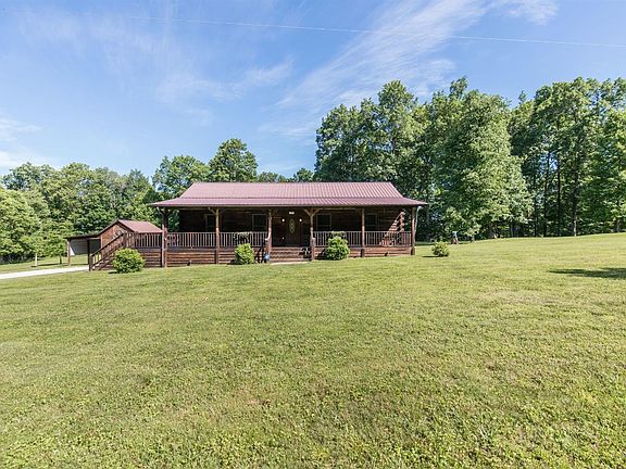 This gorgeous log home is settled on a dead-end road with almost 3 acres of beautiful land. Stepping inside this gorgeous home will leave you absolutely speechless. From the welcoming open floor plan with vaulted ceilings to the gorgeous wrap around porch you have plenty of space for entertaining your guests! The split floor plan offers exclusive privacy for the adults (large master with attached bath and large closet) while presenting the kids with their own space as well. This home will not disappoint. Close to Natural Bridge and Red River Gorge the possibilities with this property is endless.