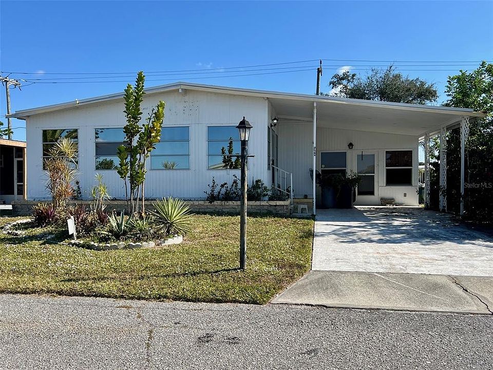 Spacious 2-bedroom, 2-bath double-wide home located in the 55+ waterfront community of Harbor Cove. Priced to reflect needed repairs, this property is a rare chance to create instant equity with some updates and renovation. The costly repairs are already completed including a new roof, interior paint, and water heater in 2023, plus new subfloors, vapor barrier, shower, AC unit, and ductwork this year! Offering 1,296 square feet of interior living space, including a bright enclosed Florida Room, and large open living/dining areas with an opening to kitchen with breakfast bar and all appliances. Attractive luxury vinyl flooring has already been installed in several areas. The roomy primary bedroom has a large ensuite bathroom and walk-in closet. The secondary bedroom also has a walk-in closet and both bathrooms have newer shower surrounds. An oversized screened lanai is under the carport plus a shed housing the washer and dryer. Located in the Pet Section and just a block away you’ll find the clubhouse, marina, two pools, spa, fitness center, and sports courts including tennis and pickleball. The HOA fee is only $150 per month, covering lawn care and full access to all amenities. For boating enthusiasts, slips are available at the marina for just $100 per year, offering direct access to the scenic Myakka River all the way to the Gulf of Mexico. Social gatherings and activities are plentiful in the community, and it is easy to make new friends at the dances, picnics, holiday golf cart parades, art classes, bingo, trivia, karaoke and more. Nearby find restaurants, shopping, Costco, farmers markets, medical services and area beaches. This home offers the perfect chance for a buyer to finish the remaining repairs, personalize the space to their taste, and secure a true bargain in a sought-after waterfront community. Schedule your private showing today and see the potential for yourself!
