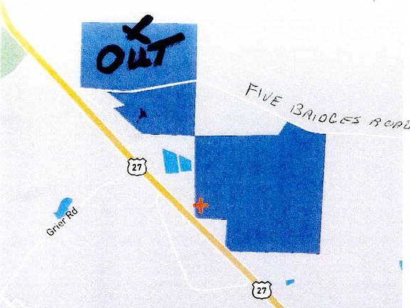 Excellent Recreational Tract! Approximately 271 Acres; 84 Acres planted longleaf Pines 15 years old - CRP; 35 Acres in 3 year planted pines; Remainder cut over; Paved road frontage on Five Bridges; road system; Touches Highway 27 in 2 places. In city Limits; $2,700.00 per acre.