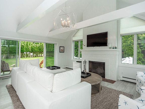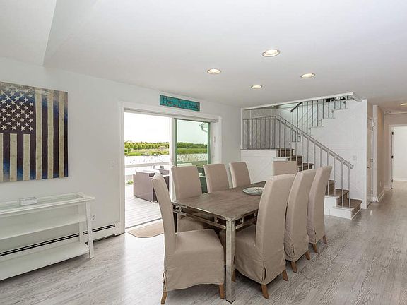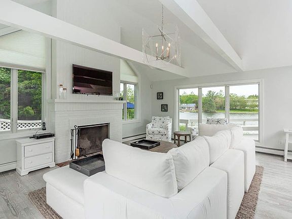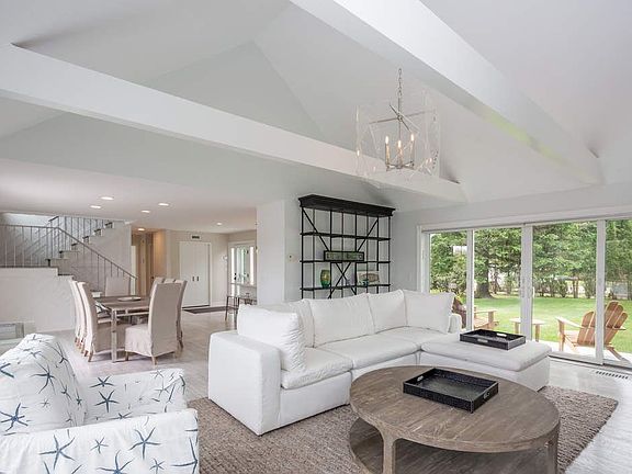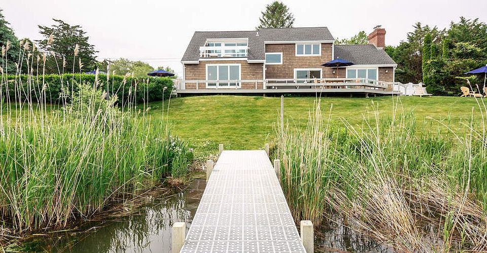 Sensational and newly renovated beach house on Mecox Bay with heated swimming pool, boat dock, Jet Ski float, paddle board/kayak racks, outdoor shower. This light and bright four-bedroom, three full-bath home has a gourmet kitchen with Wolf stove, Sub-Zero refrigerator, wine fridge, open living room/ dining room concept, woodburning fire place and large exterior decks for dining or relaxing. Moments to famed Flying Point Beach, this is the perfect summer escape.
