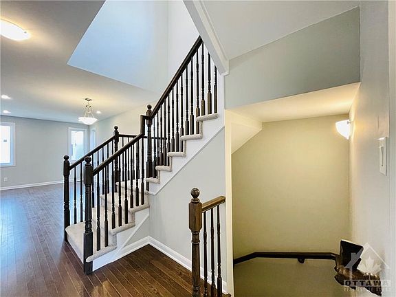 BRAND NEW 4 bedroom townhome near Barrhaven Towncentre with easy access to HWY416! This END-UNIT EXECUTIVE home is loaded with upgrades! The main level boasts an open concept living/dinning room, a spacious eat-in kitchen with quartz countertops, stainless steel appliances, modern backsplash and upgraded cabinetry. 9 FEET CEILINGS & Hardwood thru-out the main level. The upper floor offers 4 generous sized bedrooms including a large primary bedroom w/WIC and an ensuite bath. Another full bathroom and the laundry room completes this level. The finished basement features a WARMING family room for additional living and storage space. Close to 2100 sq ft of living space & MOVE-IN READY!