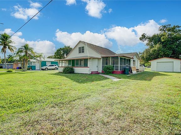 This older home sits on an oversized lot rarely found in this neighborhood, offering excellent potential for a full remodel or reconfiguration. The property features an old-fashioned front porch, original wood floors, multiple outdoor sitting areas—including a spacious back lanai—and a large detached 2-car shed/garage.