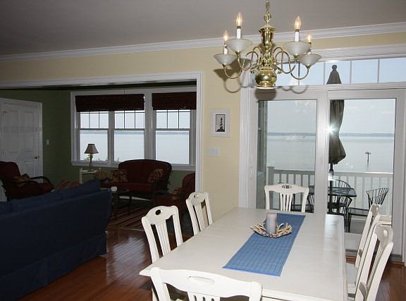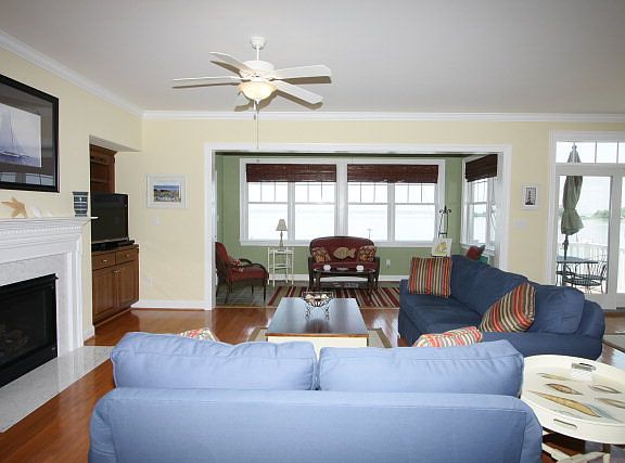 Located on the banks of the Rappahannock River w/wide water views. This 3500 sq ft 3 level paired residence enjoys spectacular sunsets. Enter on 2nd level that features bedroom, full bath, open kitchen, great rm, dining area and sunroom. Granite counters, stainless steel appliances, hardwood floors, deck. 3rd level features 3 bedrooms, 2 baths and utility area, sunroom. Lower level: family rm w/fp and wet bar, patio, full bath and 1 car garage. There is a boat slip w/lift. community pool.