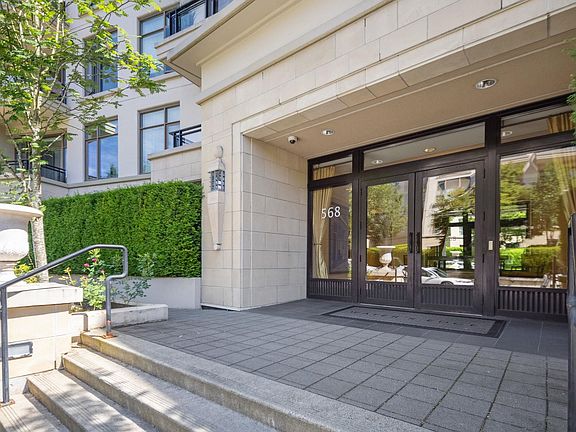 Discover the elegance and exclusivity of this highly sought-after, rarely available 1 bed + den at the Waters Edge! This coveted development welcomes you with a sense of luxury! Immaculate home offers 10-foot ceilings, timeless marble, gorgeous fireplace & hardwood floors. Gourmet kitchen is a chef’s dream featuring granite counters, Miele/Sub-Zero appliances! Partially covered patio - perfect for gardeners and entertaining. Bedroom offers adjacent den, beautiful semi-ensuite bath. Insuite laundry, parking, storage & pet friendly! Experience the ultimate in luxury living - concierge, gym, saunas, & library. Capilano River, trails, Park Royal amenities minutes away! This home would make an elegant pied-à-terre, or refined retreat for the discerning buyer. Call for your private viewing!