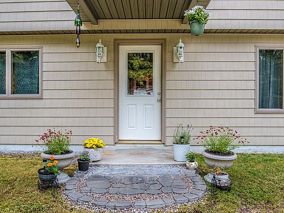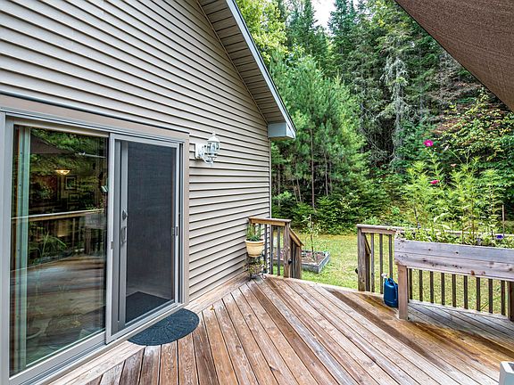 Exquisite custom-built home on 2.2 acres offers privacy and tranquility. Open-concept living is enhanced by striking cathedral ceilings and a beautiful stone wrapped gas fireplace. Culinary enthusiasts delight in the gourmet kitchen equipped with modern lighting, solid wood pull-out shelving cabinetry, and abundant countertop space. Incredible primary bedroom suite features spa-like setting with luxurious bath complete with soaking tub, as well as a spacious walk-in double head shower. A skylight adorned with beautiful mosaic tile provides natural light. All closets throughout home fitted with automatic lighting. Venture down to discover a spacious family room wired for surround sound with a designated spot for a projector screen to elevate entertainment nights. This versatile space includes a custom wet bar area and a new wood stove. Discover an additional bedroom and full bath on this level, perfect for guests or family. Separate laundry room with exceptional storage space also on this level. Efficiency and comfort are prioritized with a Buderus FHW heating system for radiant floor heat and Anderson wood-wrapped windows to keep the elements out. Enjoy an expansive deck complete with lighting, sun shade and storage under. Exterior vinyl shake siding is low-maintenance and allows you to spend more time enjoying your surroundings and less time on upkeep. This custom-built gem is more than just a house--it's a lifestyle waiting for you to embrace where luxury meets adventure.