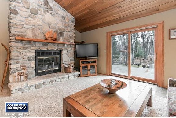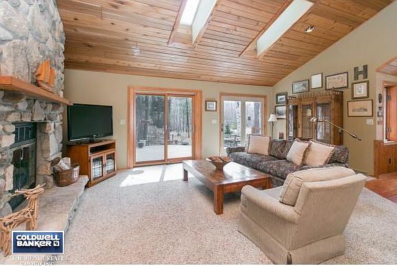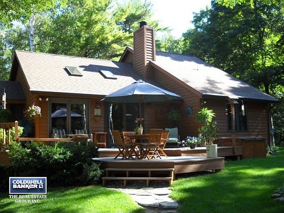 Over 7 acres p/assr on Sportsman's paradise! Open concept 3 bdrm. Kitchen w/snack bar, backsplash, hrdwd flrs, tiled countertops. Cathedral cedar ceiling in living rm, stone flr to ceiling FP, 2 sets of patio drs to multi-tiered deck, overlooking stone patio. Mstr suite w/jetted tub & tiled surround, stone sink. LL w/add'l rec rm/ofce. 2 car garage & extra 2 car garage w/ workshop.LL sqft p/seller
