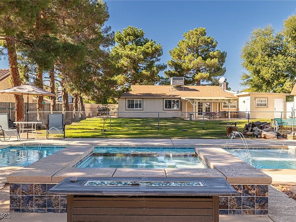 Your private Las Vegas retreat awaits on a rare ¾-acre zoned horse property with no HOA! This upgraded single-story home offers a private entrance multi-gen suite, and modern comforts throughout. Enjoy a stunning 7-ft deep pool and spa with water features, wet deck, and lush landscaping with real grass, fruit trees, and an almond tree out front. Inside features 4 bedrooms, 4 baths, dual-pane energy-efficient windows, premium bubble tub, tankless water heater, water softener, and a drinking-water filtration system under the sink & upgraded stainless steel appliances. The main home’s roof was replaced around 2015, and a brand-new roof was just completed on the garage. The oversized garage includes a large storage room, private bathroom, and a 1,000 lb I-beam hoist, along with ample power featuring a 400-amp panel and 30 & 50 amp RV hookups. A private electric gate completes this one-of-a-kind ranch-style property—offering freedom, functionality, and space in one exceptional package!