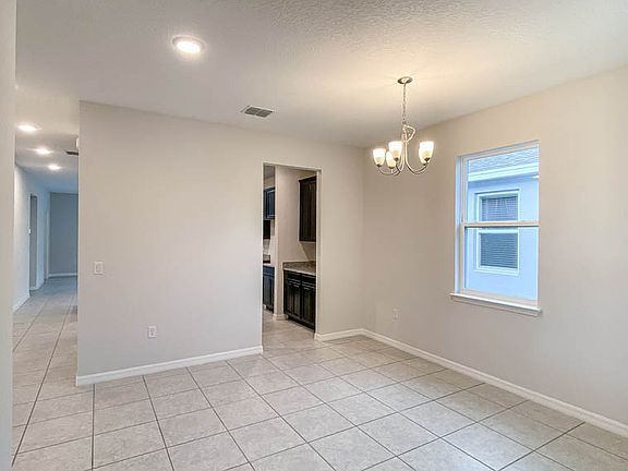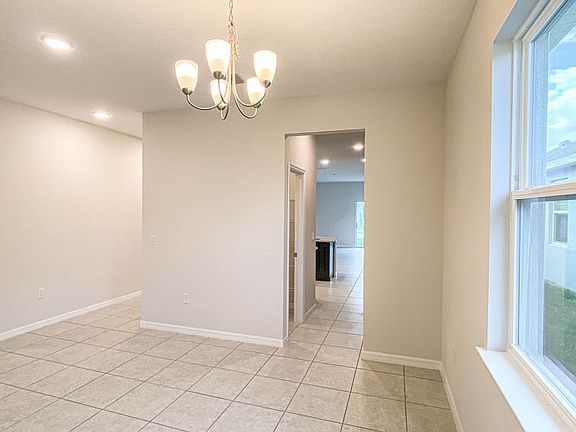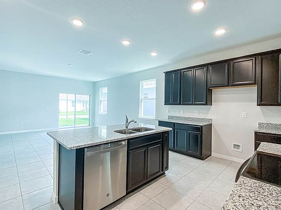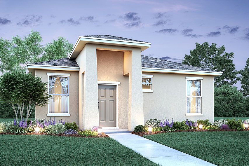 From the covered front entry, homeowners enter a wide foyer and continue into an ample dining space. Two bedrooms and a full bath sit behind a large, angled archway, adding architectural detail and rounding out the front of the home. Meanwhile, a dividing wall breaks up the space and is perfect for displaying artwork or providing a punch of Florida color. On the other side of the wall is an open kitchen and great room, each with more than enough room for lounging or entertaining. The gracious kitchen features an island with a double sink and bar top seating. There's also plenty of counter space, a large walk-in pantry, and more than enough room for several home chefs. Outside past the oversized great room, lies an exterior patio. A larger, optional lanai is also available with this new home for those wanting additional outdoor space. Back inside the single-family home, a private entryway is located off the great room and leads into a well-complemented owner's suite. With double vanities, a walk-in shower, and walk-in closet, the owner's bath meets the needs of the modern homeowner. The laundry room is situated off the great room towards the rear of the home. From here, you have direct access to the generous rear entry two-car garage. Perfect for growing families and individuals just starting out, the smartly designed Pinehurst doesn't disappoint. This home is estimated to be available for move-in in July/August 2022. Photos are approximate representations of the final home.