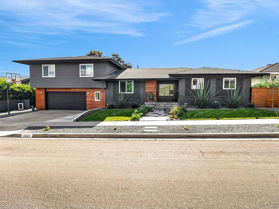 This split-level stunner is the one you’ve been waiting for! Located in the highly coveted Del Cerro neighborhood, this home offers everything you could possibly want and more. From the moment you arrive, the home’s sleek modern design, minimalist landscaping, and tiled walkway leading to a custom pivot entry door set the tone for what’s inside. Step through the front door and you’re immediately welcomed by sweeping views and a beautifully tiled foyer. The open-concept main level features a spacious living room with a modern fireplace, a renovated chef’s kitchen with an island, and an expansive 4-panel sliding door that seamlessly blends indoor and outdoor living. A custom pop-out kitchen window opens to an outdoor bar, perfect for year-round entertaining. The primary suite includes a remodeled en-suite bathroom and a generous walk-in closet. Additional bedrooms feature LVP flooring, custom closet doors, and upgraded light fixtures. All bathrooms have been tastefully remodeled. The newly renovated lower-level addition, currently used as an exercise room, offers a versatile flex space for a home office, studio, or secondary living area. The backyard is an entertainer’s dream, with a sparkling saltwater pool and spa, covered patio, grassy area, views, and no immediate rear neighbor. Modern concrete hardscaping with turf infill adds a clean, contemporary finish. The home also includes owned solar, and the garage features epoxy flooring and EV-charging capability. Ideally positioned near freeways, shopping, and within walking distance of highly rated Hearst Elementary.