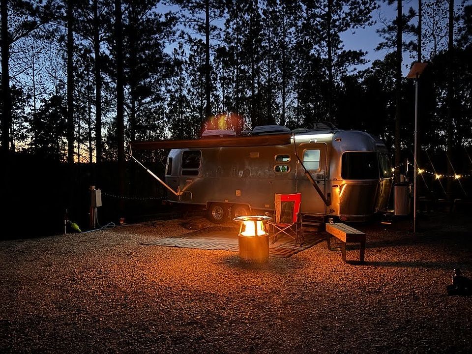Picnic tableFull hookupsFiber internetThree rv padsSpring-fed creekFire pit areaCustom iron gates