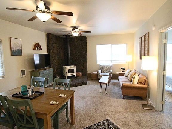 This fully furnished 1 bedroom 1 bath home is available for 3-6 month lease. Adorably appointed and boasting a large covered outdoor space perfect for all seasons and all types of entertaining options. Conveniently located just outside of Sunriver, close to the Deschutes River and Mt. Bachelor. This home is on a shared lot and located in a great neighborhood.