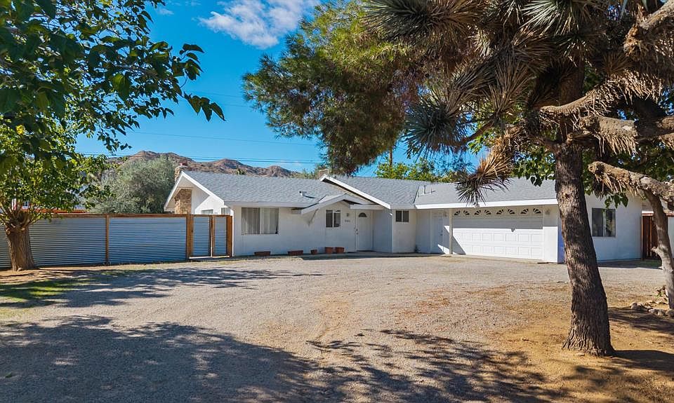 Located in Yucca Valley's picturesque Storey Park neighborhood, this 3-bedroom, 2-bath home sits on a near half-acre and offers an updated interior and a bright, open layout. Enjoy an inviting modern kitchen with sleek quartz countertops, stainless steel appliances, and abundant cabinet space. The dining area flows seamlessly into the living room, which is adorned with a large, beautiful stone fireplace and sliding doors that open to a covered patio. The spacious primary bedroom has generous closet space and an en-suite bath. Both guest rooms are well-sized and share the updated guest bath. The 2-car garage, currently utilized as a game room, offers laundry tucked conveniently inside. Out back, you'll enjoy the fully fenced yard, complete with tree-house, swings, fire pit, beautiful mature trees (including Olive and Joshua Trees) and a 15' vehicle gate has plenty of room to add amenities as you see fit. Just minutes from local shopping, dining, and Joshua Tree National Park