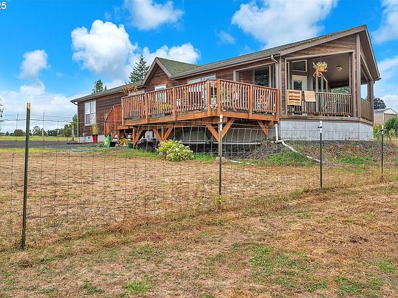 Country living! 2.47 ideal cross-fenced and livestock ready acres of pasture with thoughtfully updated three bedroom/2 bathroom manufactured home and 24x36 pole building. The lovely home is bright and airy with high vaulted ceilings and an impressive wall of windows across living and dining areas looking out over a pastoral vista, island kitchen with eating bar, gorgeous hickory cabinets and stainless appliances including side-by-side refrigerator. Wood flooring extends throughout living areas, primary bedroom includes private bathroom, utility room has direct exterior access for added convenience. Spacious wrap-around deck is partially covered for all season enjoyment. The 24x36 pole building is equipped with a roll-up door, run-in stall and electric service and is ideal for animals, workshop, storage or hobby space. Abundant parking available for your vehicles, trailers or an RV. This exceptional property is desirably located in the quiet community of Warren and offers quick access to shopping, schools, services, entertainment and water recreation. You'll especially appreciate the easy commute to Portland & the westside Hi-Tech corridor via Highway 30.