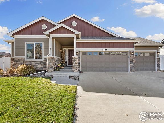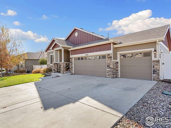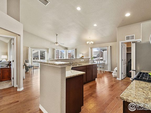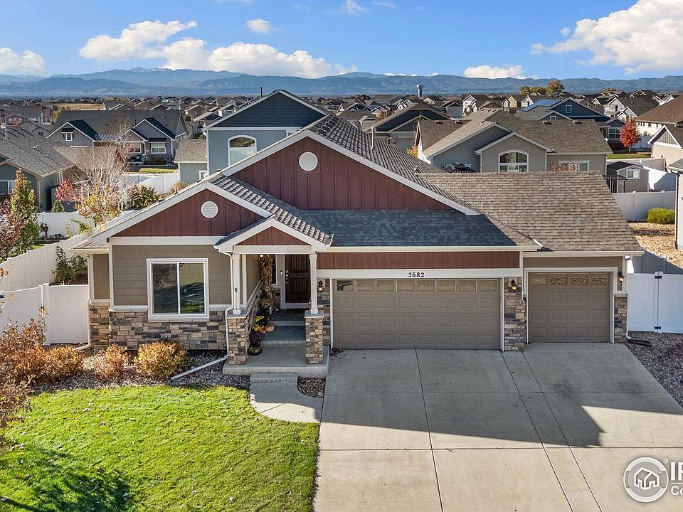Gorgeous 5 bedroom ranch home with stunning MOUNTAIN VIEWS!! This home was built by Saint Aubyn and has been lovingly maintained. You'll immediately appreciate the quality of the home, abundant natural light, wood floors, NEW carpet, and open floor plan. The expansive kitchen island, gas range, ample storage, and granite counters make this kitchen a dream come true. The back yard is ready for enjoyment with fresh mulch, a convenient dog run and stunning mountain views. Primary bedroom is a true retreat with more vaulted ceilings, soaker tub, dual sinks, and spacious walk-in closet with custom shelving. Basement is fully finished and ready to enjoy! 2 additional bedrooms downstairs plus the 3rd bathroom and space for lounging, crafting, exercising, etc. Neighborhood has a bike park, trails, playground, and quick I-25 access!