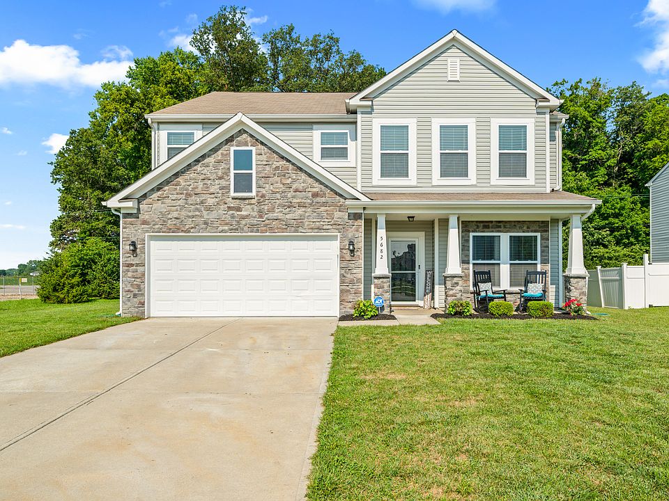 Welcome to this charming, inviting and light filled home perfectly situated at the corner with zero neighbors to the left or right behind you with a large storage shed. This great location offers easy access into town or to the interstate. Enjoy the comfort of front porch sitting or relish nature from your back deck. If your looking to entertain this home has a great open concept kitchen, dining room and living room perfect for holiday gatherings. The kitchen has plenty of cabinets, newer stainless steel appliances, a nice size pantry and a large island with bar seating. The living room has a beautiful accent wall with batten board and another accent wall with painted shiplap and a electric fireplace perfect for your for your 70 inch or larger tv. This spacious home offers 5 generous size bedrooms & laundry room upstairs, the two flex rooms downstairs could be used as an office, craft room, gaming room or extra bedrooms. The flex room used as an office has a beautiful handcrafted barn door that is absolutely beautiful. There is a half bathroom downstairs and two full bathrooms upstairs. The large master bedroom is the perfect oasis and has a nice ensuite and generous size walk in closet. This home is ready for it's next family to make memories.