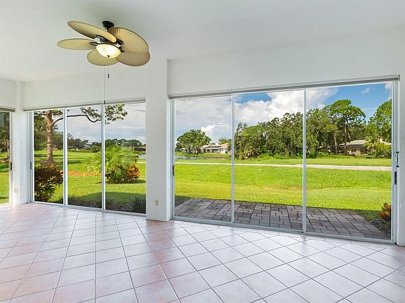 Stunning sunsets and carefree living in this maintenance-free home in The Meadows, a park-like oasis in one of Sarasota’s best locations. A canopied street, stamped-concrete driveway and tropical landscaping create a warm welcome. Inside, high ceilings, abundant natural light and an open layout set the stage for everyday comfort and cheerful living. At the heart of the home, the kitchen features white cabinetry, Steel Grey granite countertops, stainless steel appliances and a casual dinette. Relax daily in the Florida room or on the outdoor patio, ideal for quiet mornings enjoying golf and pond views, and evenings spent watching spectacular sunsets. All just 250 feet to the heated community pool and minutes to all the fun amenities The Meadows has to offer. The Meadows, a 1,600 park-like oasis in a prime location, is a resort lifestyle community 15 minutes from downtown. Residents enjoy 14 miles of trails, fun activities, fitness center, Junior Olympic pool, 10 pickleball courts plus, pay-to-play at a top-notch tennis complex and three golf courses. You’ll live near award-winning beaches, remarkable arts and culture, and just five minutes from Nathan Benderson Park, Mote SEA Aquarium, Whole Foods, Trader Joe’s and The Mall at University Town Center, a world-class shopping, entertainment and dining destination. A fabulous Florida lifestyle awaits! 2021 air-conditioning system, 2015 tile roof and above flood plain in flood zone X.