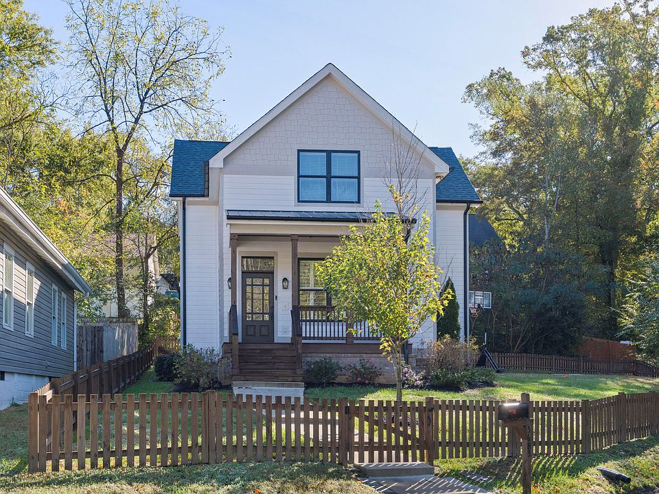 Curb appeal galore at this 3 bedroom 2.5 bath home on a double lot with a picket fence and covered front porch in the heart of St Elmo! Built in 2022, this well-designed home boasts an open floor plan, the primary on the main, lofty ceilings, plantation shutters and blinds, decorative and recessed lighting, hardwood floors throughout much of the house, and coveted off-street parking in the wide, gated driveway. Your tour begins with entry to the living area that is open to the kitchen. The kitchen has a large center island with a level dining bar and pendant lighting, soft-close cabinetry, marble tile backsplash and stainless appliances. The dining room is spacious and has a pocket door to the powder room and access to the primary suite. The primary bedroom has a walk-in closet and private bath with a dual vanity, linen closet, and a shower with tile and glass surround. The laundry room is off the kitchen and has a rear door from the driveway area which is perfect for everyday ingress and egress. Head upstairs where you will find a central bonus room with a vaulted ceiling, a full hall bath and guest bedrooms on either side. Both bedrooms have vaulted ceilings, ceiling fans and spacious closets. All of this, and you are close to the community playground and just minutes from downtown Chattanooga, so please call for more information and to schedule your private showing today. Information is deemed reliable but not guaranteed. Buyer to verify any and all information they deem important.