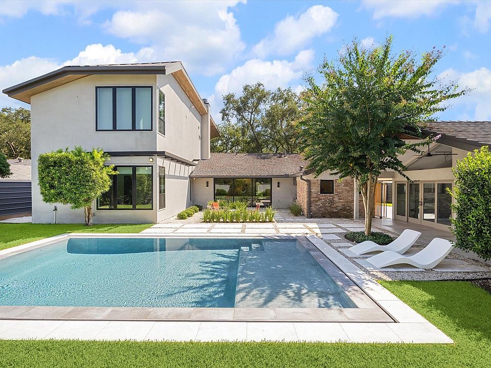 MUST TO SEE and a Great NEW price! This Fabulous Home sits on a 14,250 SF Lot in the desirable Tanglewood neighborhood. It was fully REBUILT in 2021-2022, transforming it into a modern masterpiece. The open concept floor plan is functional and offers spacious en-suite bedrooms, a dedicated office area, a formal dining room with a butler's pantry, and two living areas with incredible views. The abundant natural light is real, and it's reflected in all areas of this residence! The backyard is adorned by an infinity-edge HEATED POOL, an outdoor kitchen, and a covered patio. It is fully landscaped with a state-of-the-art drainage system. Enjoy the privacy of the gated driveway and porte-cochere. The ample garage is prewired for an electric car charger, and a split unit has been installed. Other Features: Generator connection ready, one-of-a-kind staircase, water filtration system covers the entire home, gaslog fireplace, High-end custom kitchen built by LEICH & appliances by MIELE.
