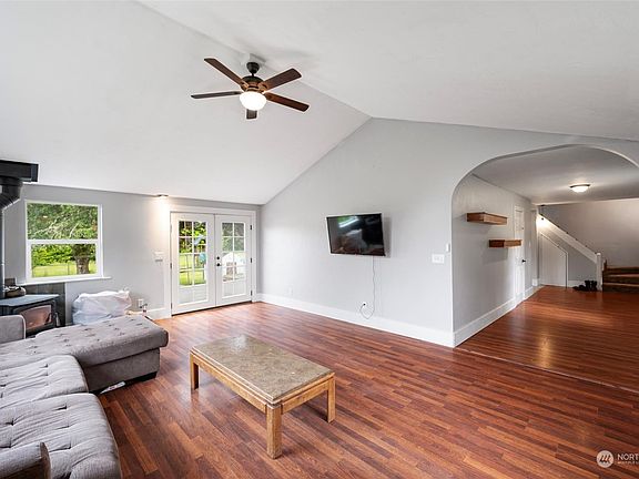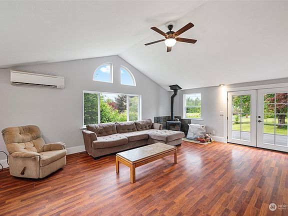 Classic home on just shy 2-acre property with breathtaking mountain views! Boasting a newer metal roof, hardi-plank siding, huge trex deck, and a large fenced in area for dogs. Inside find a huge living room with vaulted ceilings with french doors. You also have a 3 head mini-split system for inexpensive heat and the bonus of A/C & a wood stove! Kitchen has lots of room to cook and also offers a vaulted ceiling. Bathroom has full tile shower and heated floors. Utility/sun room beams with light! So roomy & sunny you will actually want to do laundry! Upstairs being used as 3rd bedroom. Outside you have plenty of space for a garden and don't forget the apple & cherry trees! A nice dry outbuilding for storage or a shop & it has 220 power.